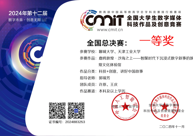 第六届全球校园人工智能算法精英大赛算法专项赛·数码艺术赛道全国总决赛二等奖