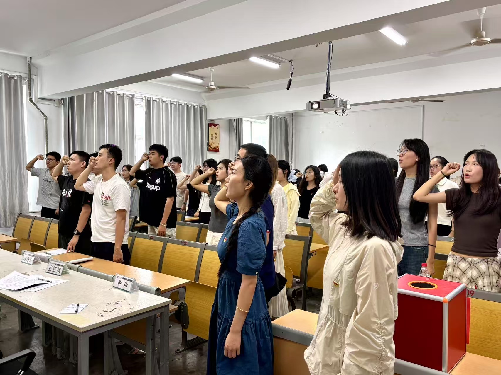 会上,韩琪、张坤、王可欣、郭泽文、李梦雅、王佳琳、刘一宏、贺梦竹8名发展对象首先汇报了个人对党的认识、入党动机及现实表现情况。随后,党支部书记暨第一入党介绍人崔洁康同志介绍了对他们的培养考察情况,并就其在政治立场、思想觉悟、工作表现、学习态度及日常品行等方面进行了综合评价,明确表示同意其入党意见。支部纪检委员董琦同志代表支部委员会报告了审查结果:经审查,韩琪等8名同志政治历史清白、政审合格,入党动机端正,思想觉悟和政治素养符合要求,均无重大政治历史问题。经与会具有表决权的党员充分讨论并采取无记名投票方式进行表决,一致同意接收韩琪、张坤、王可欣、郭泽文、李梦雅、王佳琳、刘一宏、贺梦竹8名同志为中共预备党员。