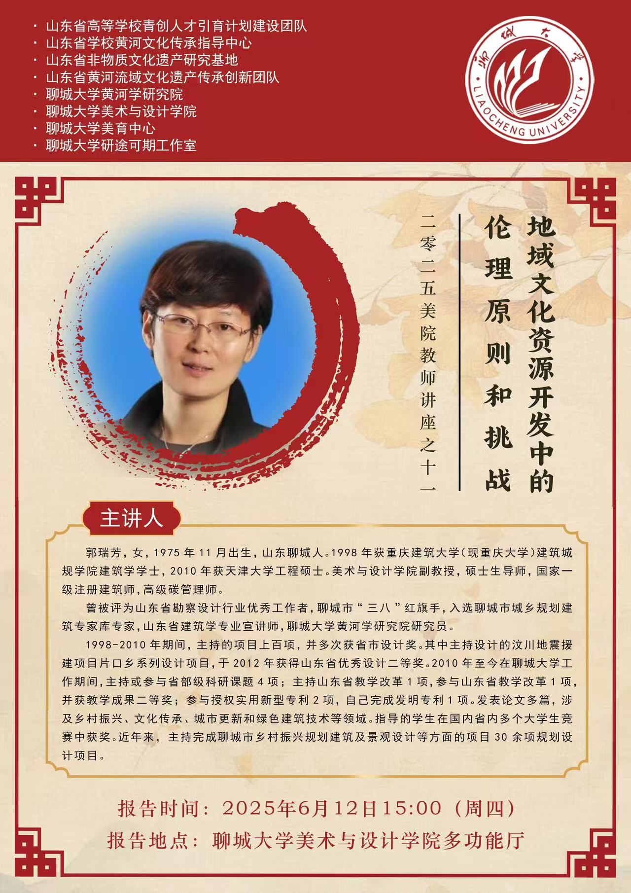 2025年6月12日,公司郭瑞芳老师于公海gh555000aa线路检测一楼多功能厅举办了《地域文化资源开发中的伦理原则和挑战》的专题讲座,为师生们呈现了一场极具深度与现实意义的学术盛宴。