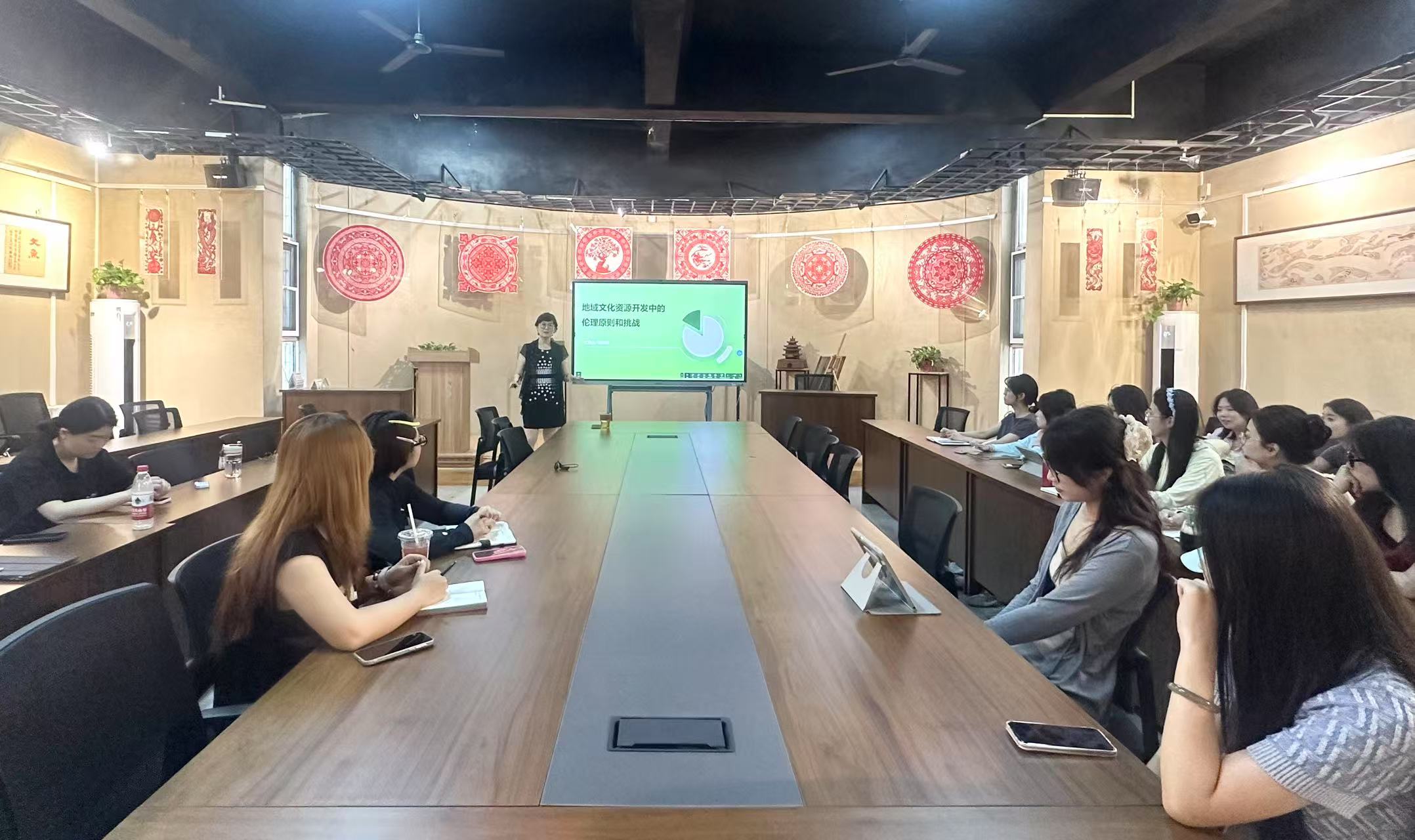 郭老师深入阐释了伦理的定义、核心价值及其在文化资源开发中的重要性,更结合大量实际案例,对商业利益冲突、文化认同危机等伦理挑战进行了细致解读。本次讲座将理论讲解与实践分析有机结合,让在场师生对地域文化资源开发的伦理问题有了更全面、深刻的认识。