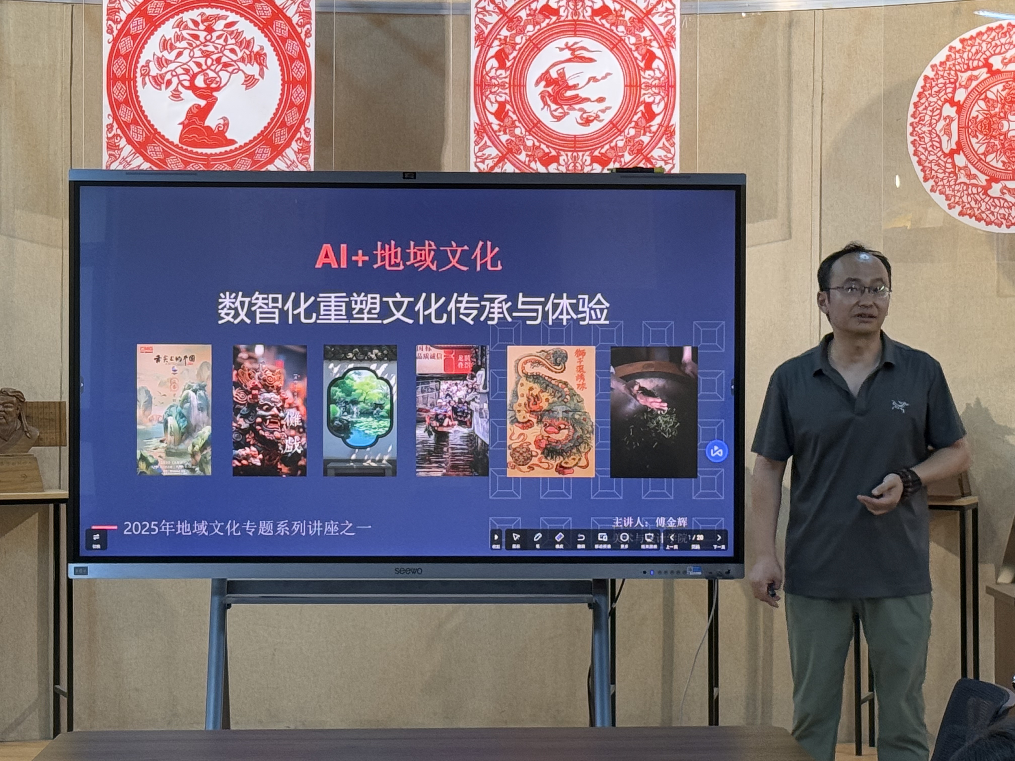 6月19日下午,傅金辉副教授于公司一楼多功能厅举办了《AI+地域文化:数智化重塑文化传承与体验》专题讲座。傅金辉老师分享了他对数字化浪潮下AI+地域文化的理解,为员工们揭开科技与人文交融的神秘面纱。2024级全体研究生参与此次讲座。