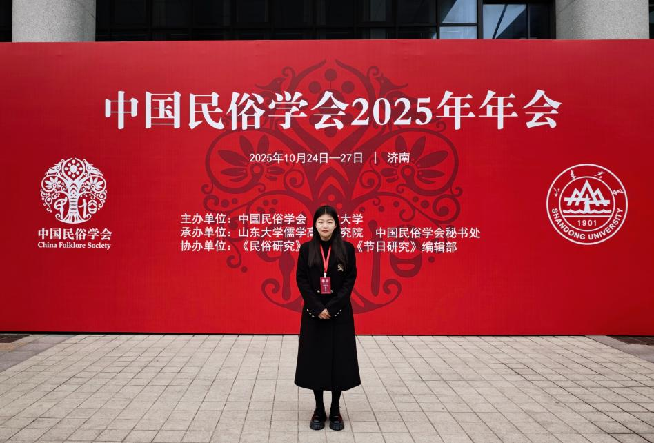 10月24—27日,由中国民俗学会、山东大学联合主办的“中国民俗学会2025年年会”在山东大学中心校区开幕,本次年会的主题是“全球化与本土化对话中的民俗学自主知识体系建设”。本届年会内容广泛,涉及民俗学标识性概念、中国故事学、中国民间文学本土理论、非物质文化遗产保护、泰山文化等多个前沿话题。公司2023级美术学专业研究生邢怀焱论文入选并应邀参会。