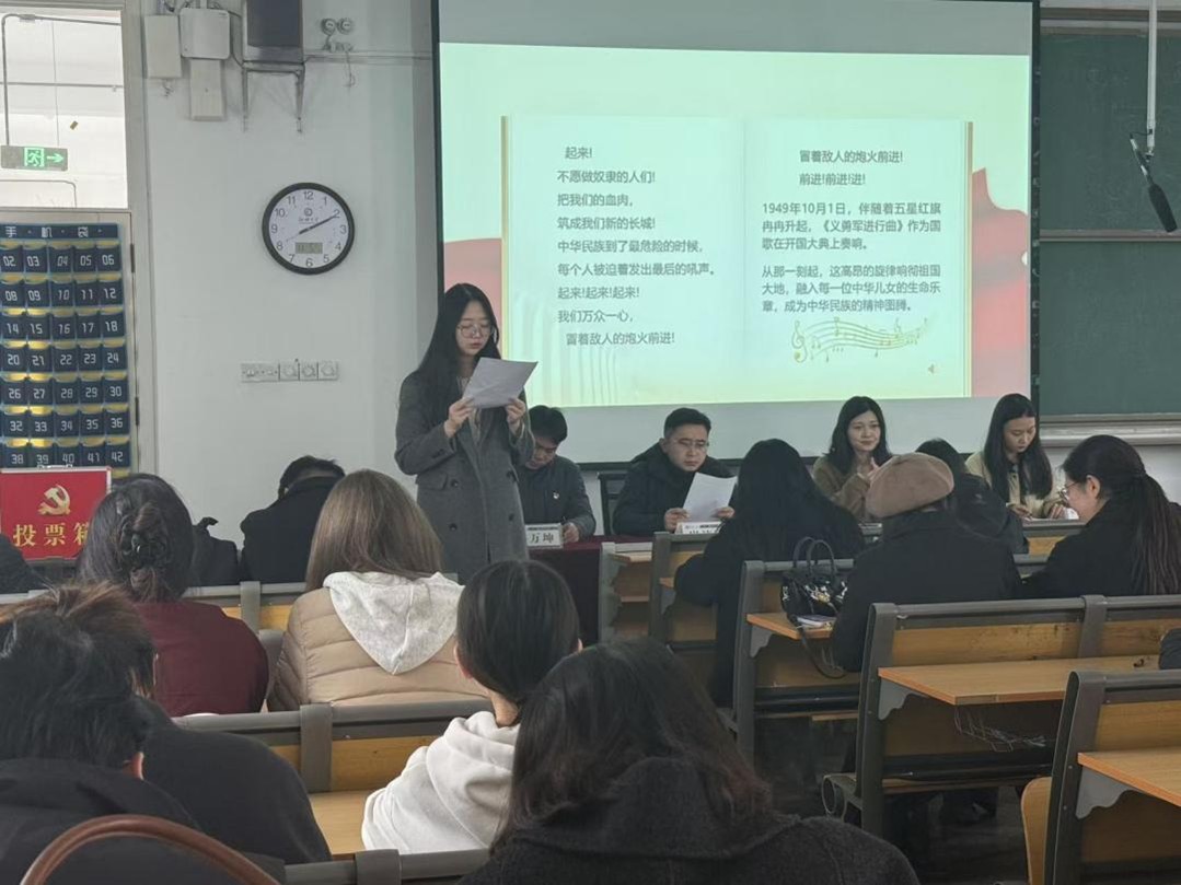会上,孙文俊、刘佳悦、谢畅、孙弘泰、张睿阳、袁之琳、孟凡珂、张一诺8名发展对象首先汇报了个人对党的认识、入党动机及现实表现情况。随后,支部组织委员暨第一入党介绍人高秀秀同志介绍了对他们的培养考察情况,并就其在政治立场、思想觉悟、工作表现、学习态度及日常品行等方面进行了综合评价,明确表示同意其入党意见。支部书记崔洁康代表支部委员会报告了审查结果:经审查,孙文俊等8名同志历史清白,政治立场坚定,入党动机端正,具备合格的政治素养与思想觉悟,均符合发展要求。经与会具有表决权的党员充分讨论并采取无记名投票方式进行表决,一致同意接收孙文俊、刘佳悦、谢畅、孙弘泰、张睿阳、袁之琳、孟凡珂、张一诺8名同志为中共预备党员。