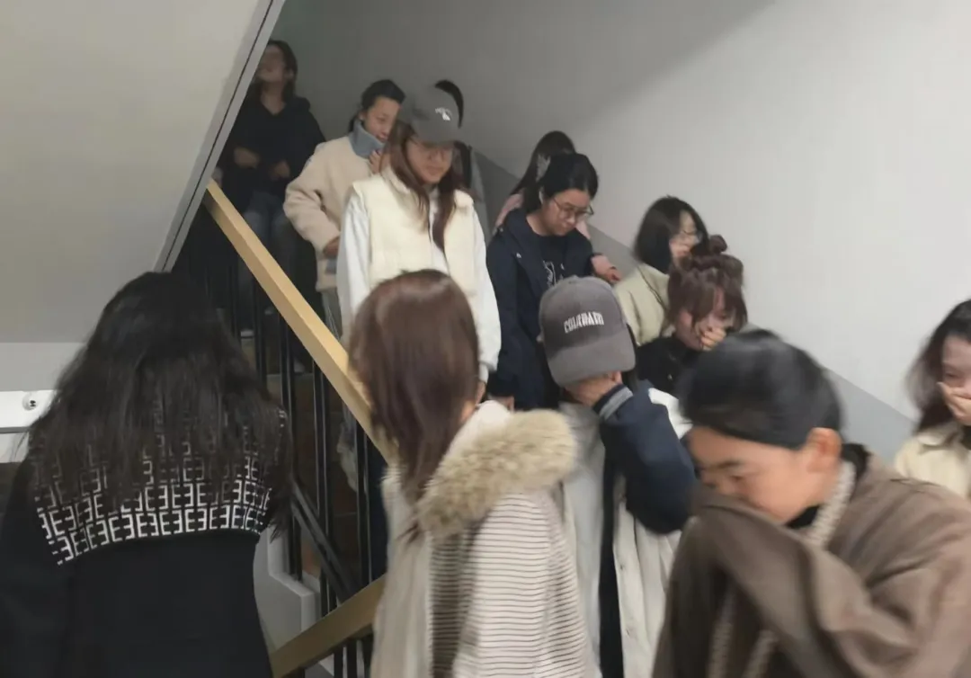 演练开始前,负责人对楼内消防设施进行了全面检查与维护,涵盖烟雾报警器、消防栓及灭火器等关键设备,确保其处于良好运行状态。同时面向参与员工发布演练注意事项,明确疏散流程,规划合理路线,并在各通道设置醒目标识,保障路线清晰可辨。随着消防警报响起,同学们迅速反应,用湿毛巾捂住口鼻,采取低姿弯腰方式,严格沿预定路线有序撤离。过程中全体人员自觉保持距离,有效防止拥挤与踩踏风险。抵达安全集结点后,负责人立即清点人数,确认全员均已安全疏散。