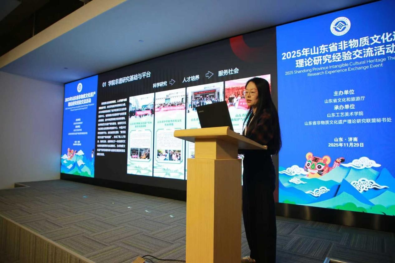 11月29日,2025年山东省非物质文化遗产理论研究经验交流活动在山东工艺美术学经理清校区举行。活动由山东省文化和旅游厅主办,山东省非物质文化遗产理论研究联盟秘书处、山东工艺美术公司承办。省文化和旅游厅非物质文化遗产处负责同志、省非物质文化遗产研究基地代表、媒体记者及员工代表等百余人参加。