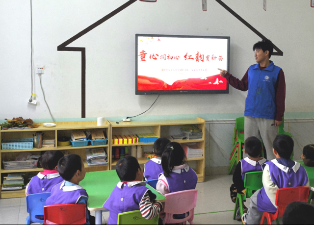 活动伊始,志愿者带领孩子们聆听多首经典红色曲目,通过讲述时代背景、剖析歌词中的奋斗精神与爱国斗志,帮孩子们培育爱国意识。紧接着志愿者教唱红歌,孩子们以饱满情感、嘹亮歌声完成集体演唱,稚嫩嗓音尽显团结风貌,让崇尚英雄、逐梦家国的种子悄然扎根童心,志愿者全程以情传声、以歌润心,浓厚红色氛围浸润现场,有效提升了孩子们的民族荣誉感与国家认同感。活动尾声,温馨合影定格美好瞬间,掌声与欢笑声为此次实践画上圆满句号。
