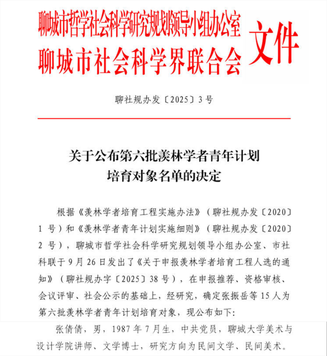 近日,聊城市哲学社会科学研究规划领导小组办公室、聊城市社会科学界联合会公布了第六批羡林学者青年计划培育对象人选、第二批羡林学者创新团队入选名单。公司张倩倩博士入选第六批羡林学者青年计划培育对象;经理史秀娜主持的“区域文化研究团队”以及王洪香副教授主持的“文化遗产保护与传承研究团队”成功入选第二批“羡林学者创新团队”。
