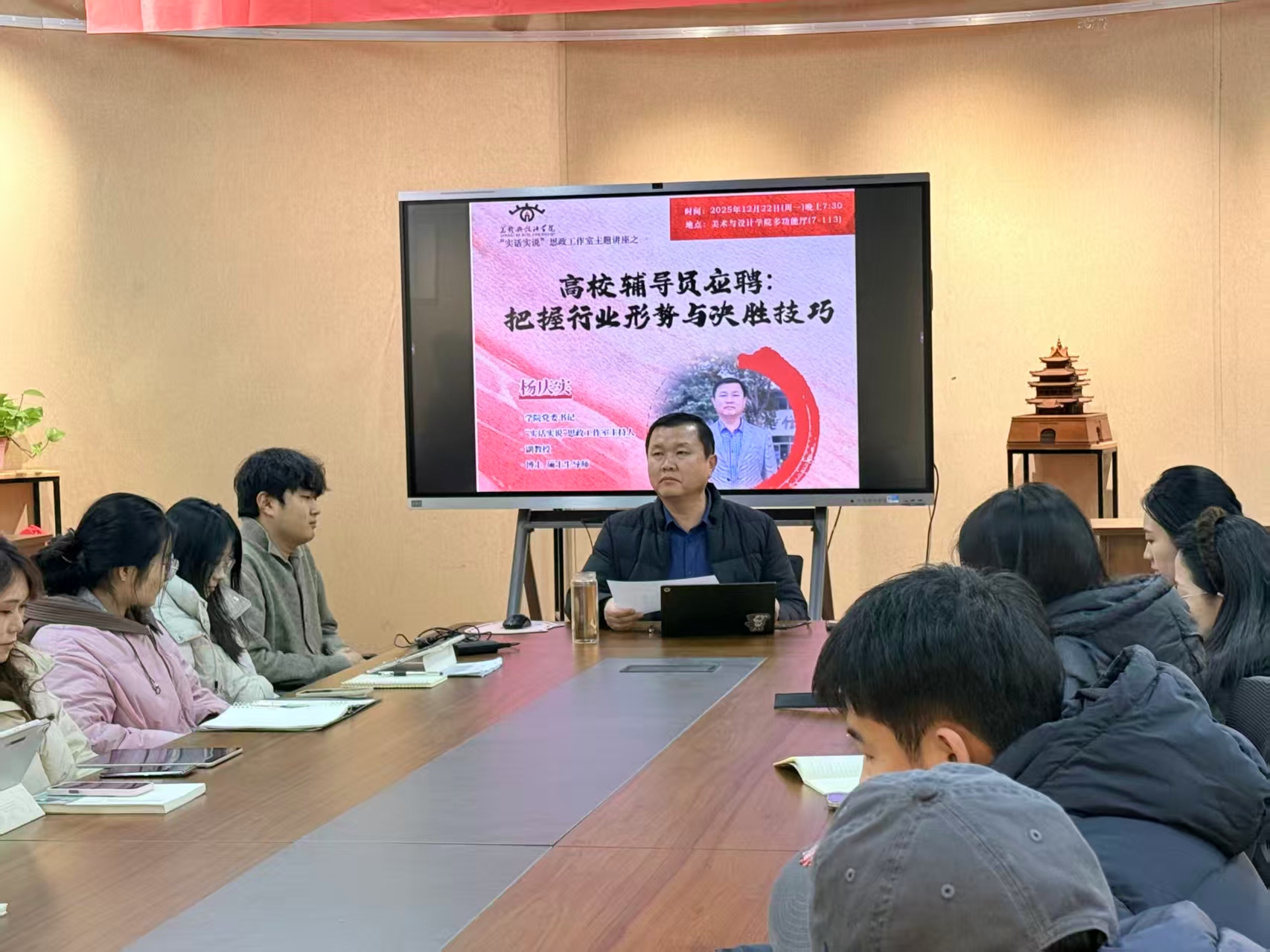 此次讲座内容详实、聚焦实务,不仅为有意报考辅导员岗位的研究生精准锚定备考方向、系统构建复习策略,更通过深度解析职业特质与能力要求,助力同学们深化岗位认知、明晰择业优势、厘清发展路径。活动的顺利举办,有效丰富了公司就业指导服务的内涵与形式,为持续提升毕业生就业竞争力、扎实推进公司毕业生高质量就业工作提供了有力支撑。