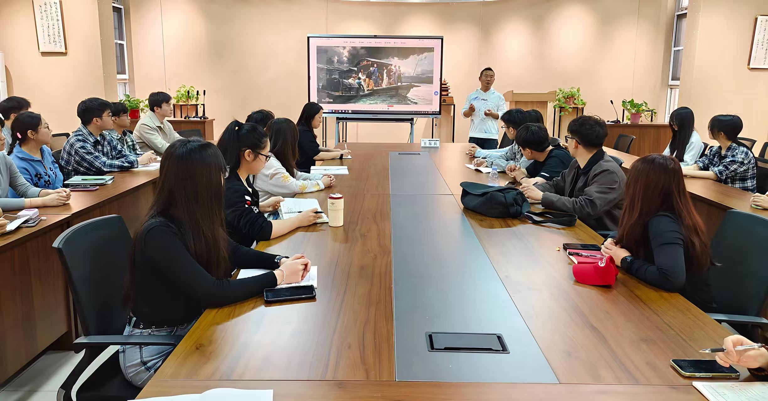 讲座中,王东兵以经典美术作品为线索,深入挖掘画作背后的党史故事与精神内核,让静态的艺术“开口说话”。他从油画《启航——中共一大会议》的解读入手,通过剖析画面中人物的神态、动作与构图,生动还原了中共一大从上海转移至嘉兴南湖的历史细节,深刻阐释了“红船精神”中开天辟地、敢为人先的首创精神。随后,通过对《井冈山会师》《遵义会议》等一系列经典作品的赏析,展现了革命先辈坚韧不拔的意志与视死如归的气节。