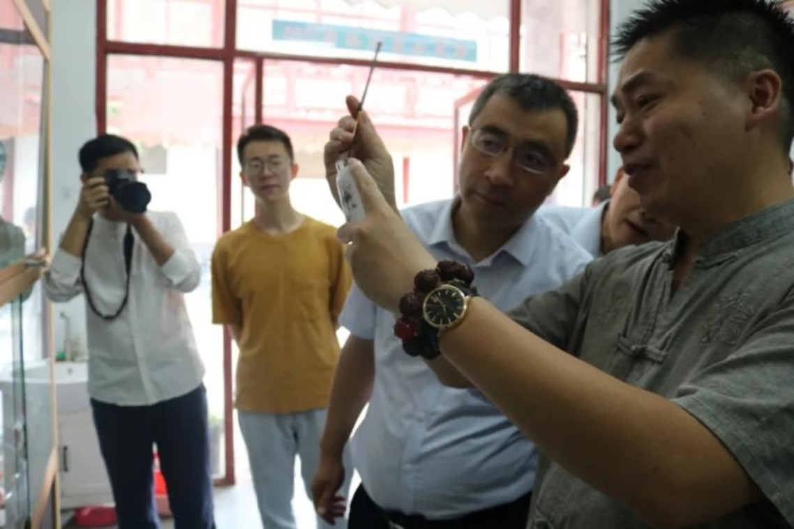7 月 20 日,山东省文化和旅游厅大运河沿线调研组一行 10 余人在公海gh555000aa线路检测民俗研究所所长刘昆和省文化和旅游厅非遗处副处长蒋士秋的带领下,来宣阜巷实地考察调研非遗项目及传承人群,深入了解宣阜巷非遗保护、传承工作及传承人群的发展现状。济宁市文化和旅游局二级调研员张康、任城区文化和旅游局副局长汪孟军陪同调研。