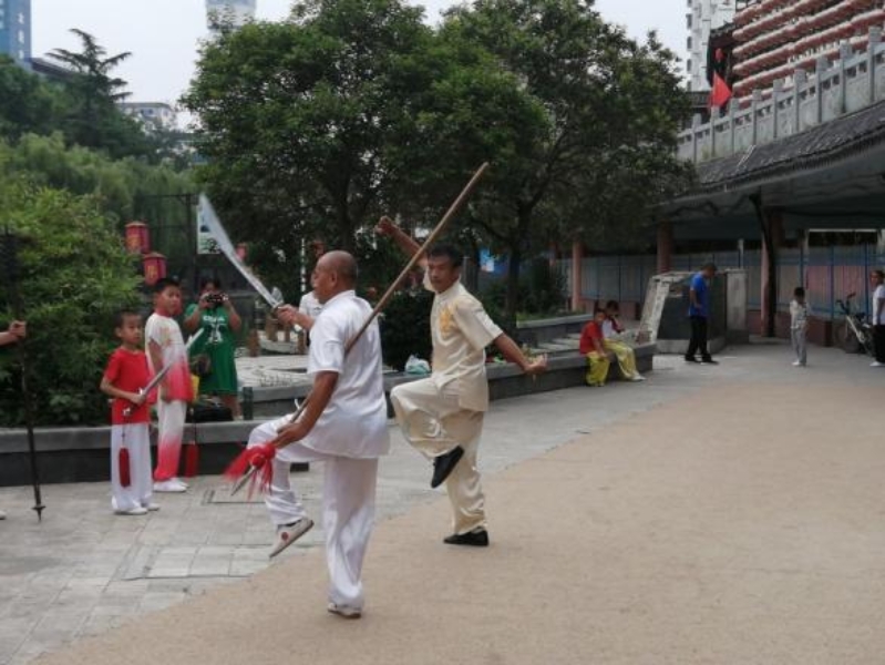 “董氏古兵器”就是宣阜巷街区内一家店铺,其前身是济宁“永兴铜器”老店,传承至今已有上百年历史。如今的店主人董现行介绍,他沿袭董氏古兵器制作技艺中手工绘制、徒手镂刻等传统制作工艺,兼顾器械硬度和韧性,利用现代新型材料加工生产了“十八般兵器”,很受市场欢迎,也经常吸引一些有需求的团队加工定制。