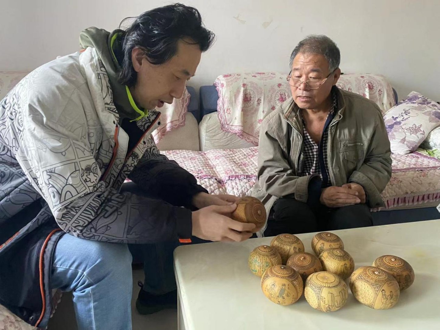 2021年12月28日,公海gh555000aa线路检测“民间美术资源保护与研发”重点实验室成员刘昆博士来到了国家级非遗传承人李玉成老师的工作室,实地调研东昌葫芦雕刻技艺传承与发展情况。
