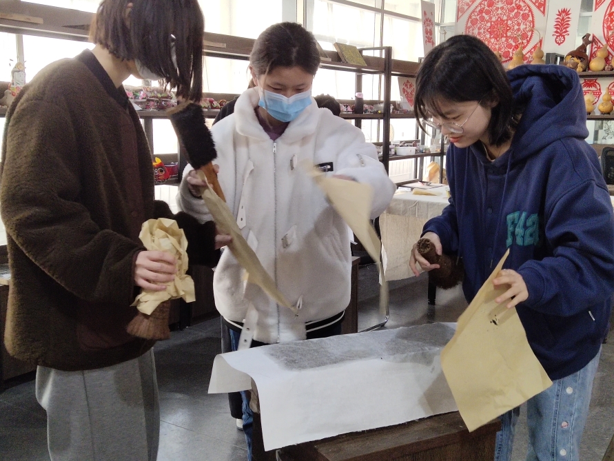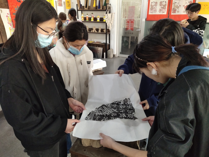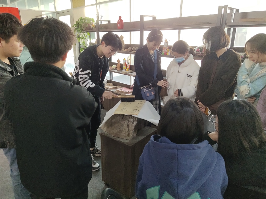 2022年3月7日,2021级书法系员工来到山东省“民间美术资源保护与研发”重点实验室,学习非遗技艺——中国传统传拓技艺。