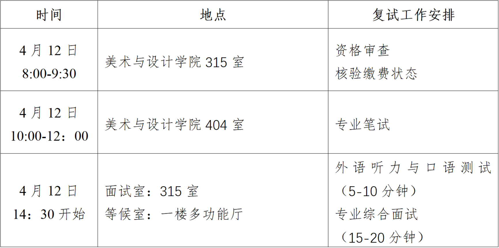现场调剂:调剂复试于4月12日进行。请考生携带相关材料于4月12日8:00前到公海gh555000aa线路检测西校区7号楼315室进行复试资格审核。专业笔试于12日10:00在404室进行。专业综合面试于12日14:30在7号教学楼315室进行。请考生凭准考证自西校区北门入校。具体时间安排如下: