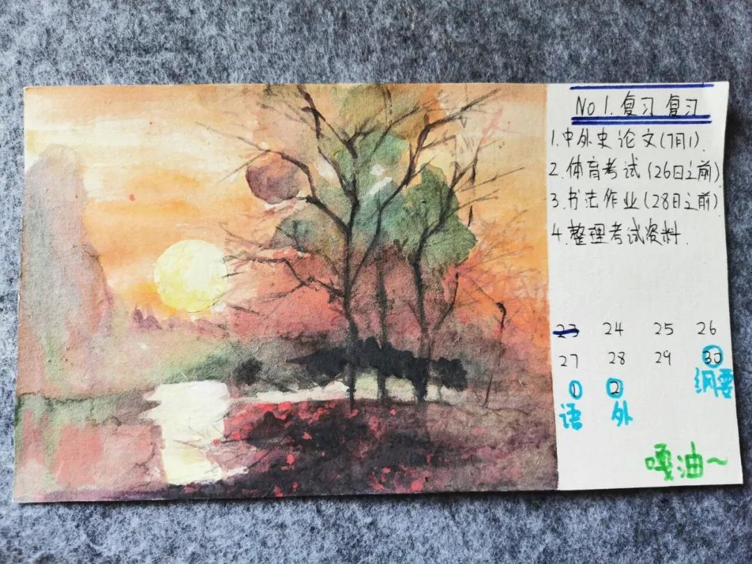 参与本次活动的同学可以通过各科老师发的知识点再结合自己的实际,对于自己的水平有一个总体的认识。然后,同学们给自己制作一个关于期末考试的手账,手帐包括考试的知识点和自己的复习计划。并将自己对于期末考试的心情表现到手账作品中,以缓解考试的焦虑