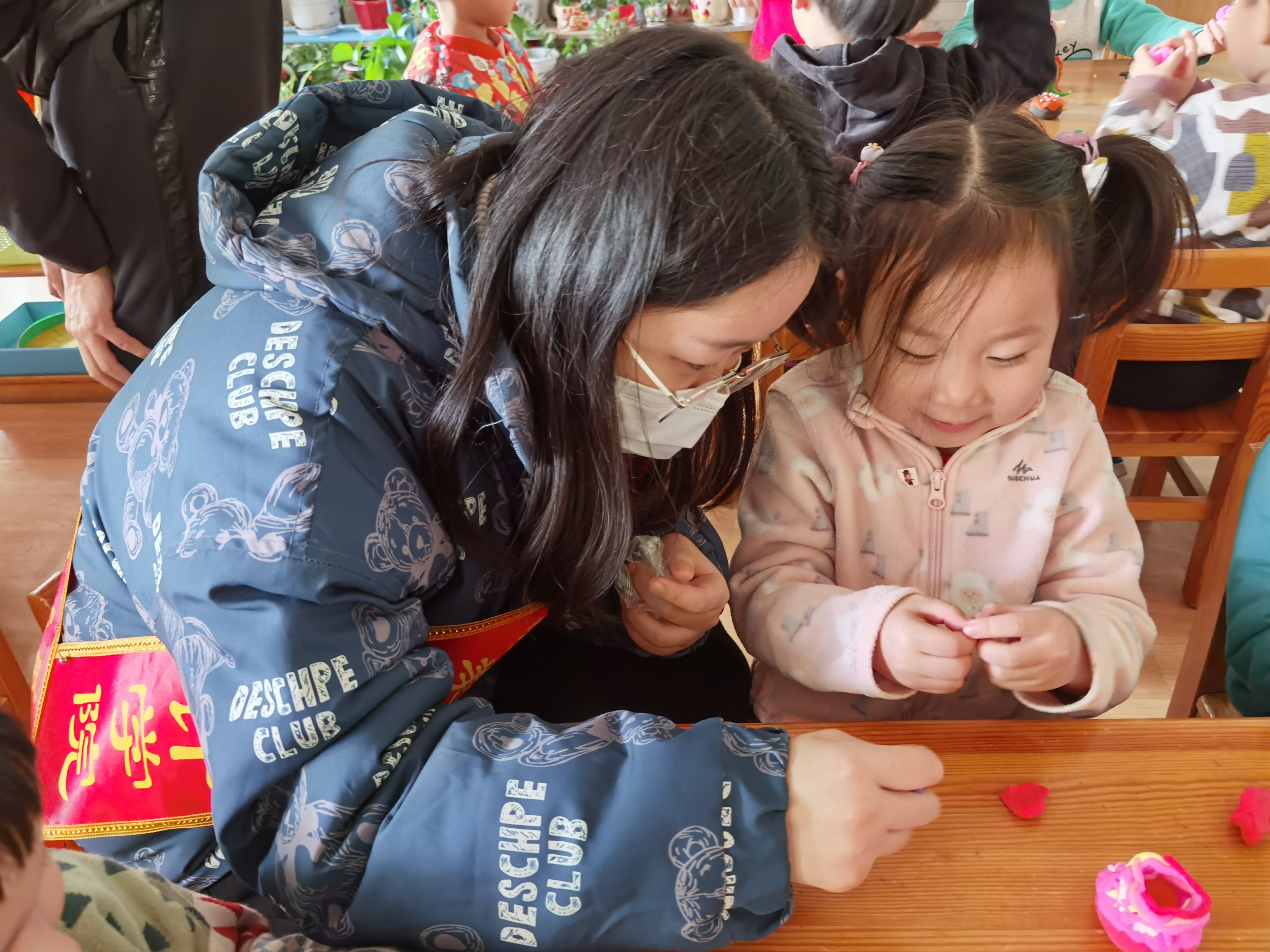 志愿者们提前准备好需要的面塑作品以及面塑材料,到达幼儿园后,志愿者们先向小朋友们介绍了面塑的文化,并耐心解释如何制作面塑,分工明确,小朋友们充分发挥自己的联想,不拘束于传统的面塑,随意“张冠李戴”也不觉得怪异,不一会甜甜圈、小恐龙、葫芦娃、小花等很多面塑从小朋友的手里捏造出来了,在面塑活动中小朋友们感受乐趣并产生对面塑喜爱的情感,萌发初步的审美情趣,促进小朋友们手部肌肉的发育和手眼协调能力、动手操作能力、创造表现能力的发展,使其养成良好的操作习惯。
