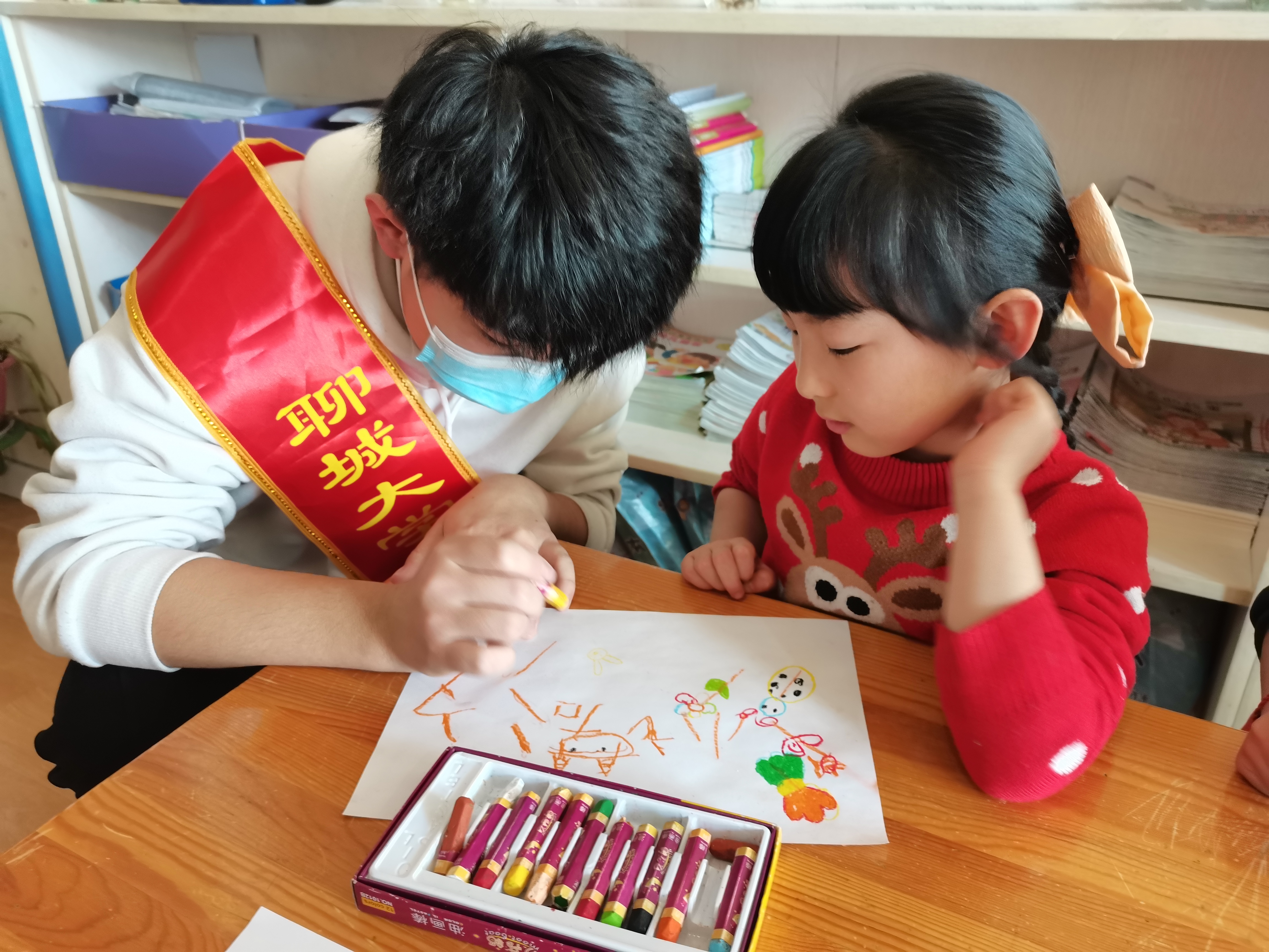 志愿者们在做好防护的情况下,到达幼儿园,与小朋友一起将自己的名字进行大变身,展现汉字独特的魅力。志愿者们身为美术专业的员工,通过自身的专业优势,用自己的专业知识来帮助小朋友进行更好的创作。小朋友们发挥着自己的想象力,把一个个有趣可爱的图案融入到自己的名字中,五彩缤纷的画纸上画满了他们对于自己名字的理解。在当今社会中,人们习惯性用打字来代替手写文字,人们对于汉字的认识也越来越浅,但大家通过小朋友的作品,可以看出汉字在他们心中多么有趣,略显稚嫩的笔触也使作品更加可爱生动。活动后期,志愿者们对小朋友们的作品进行讲解,小朋友们也互相分享自己的作品。最后,大家和作品合影留念。