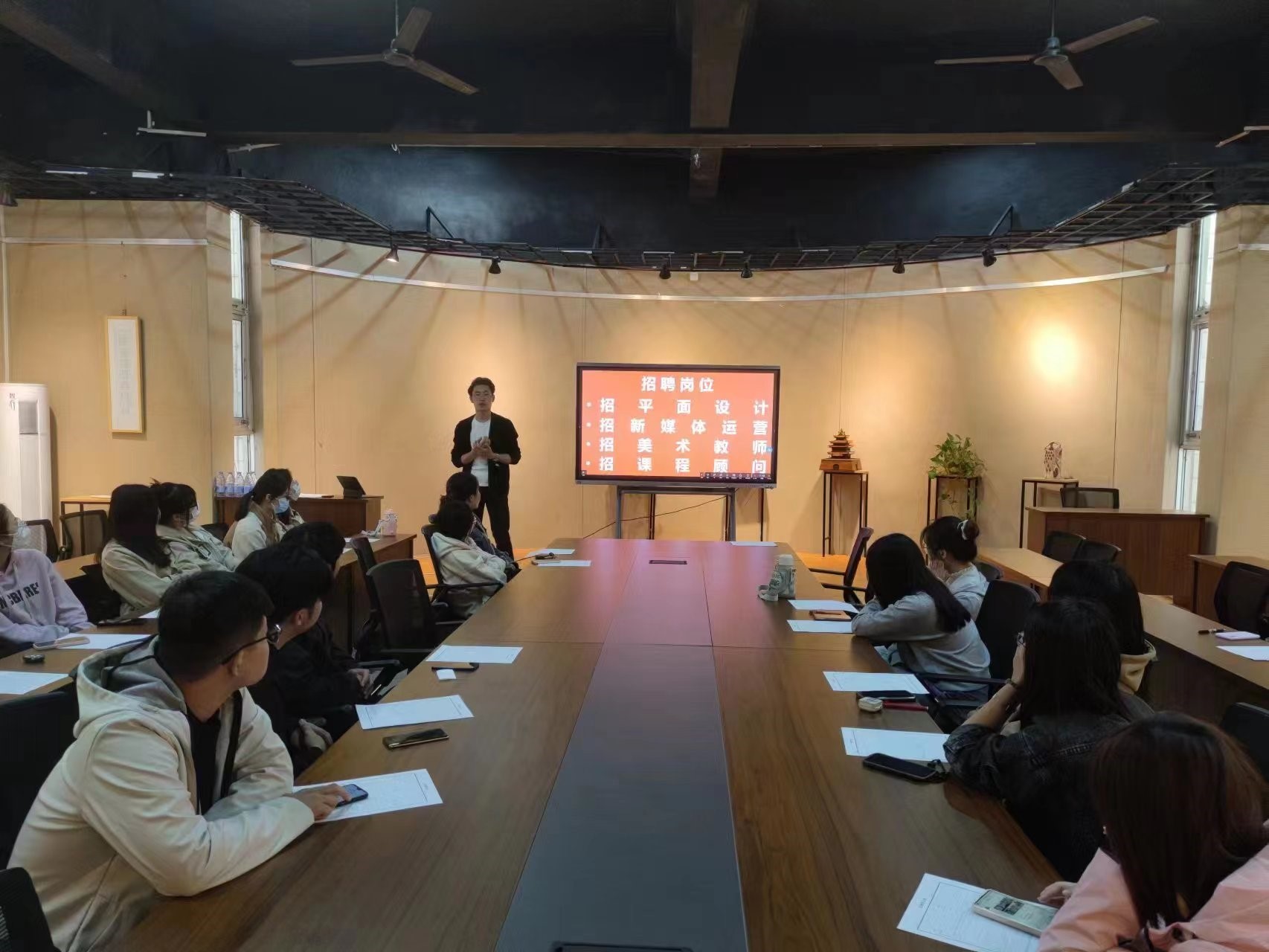 为拓展毕业生就业渠道,促进毕业生更充分、更高质量就业,2023年4月12日,公司举办济南市道北艺术培训公司专场招聘宣讲会,本次宣讲会由济南市道北艺术培训公司董事长刘长虎主讲,单位人事经理与公司部分2023届毕业生参加。