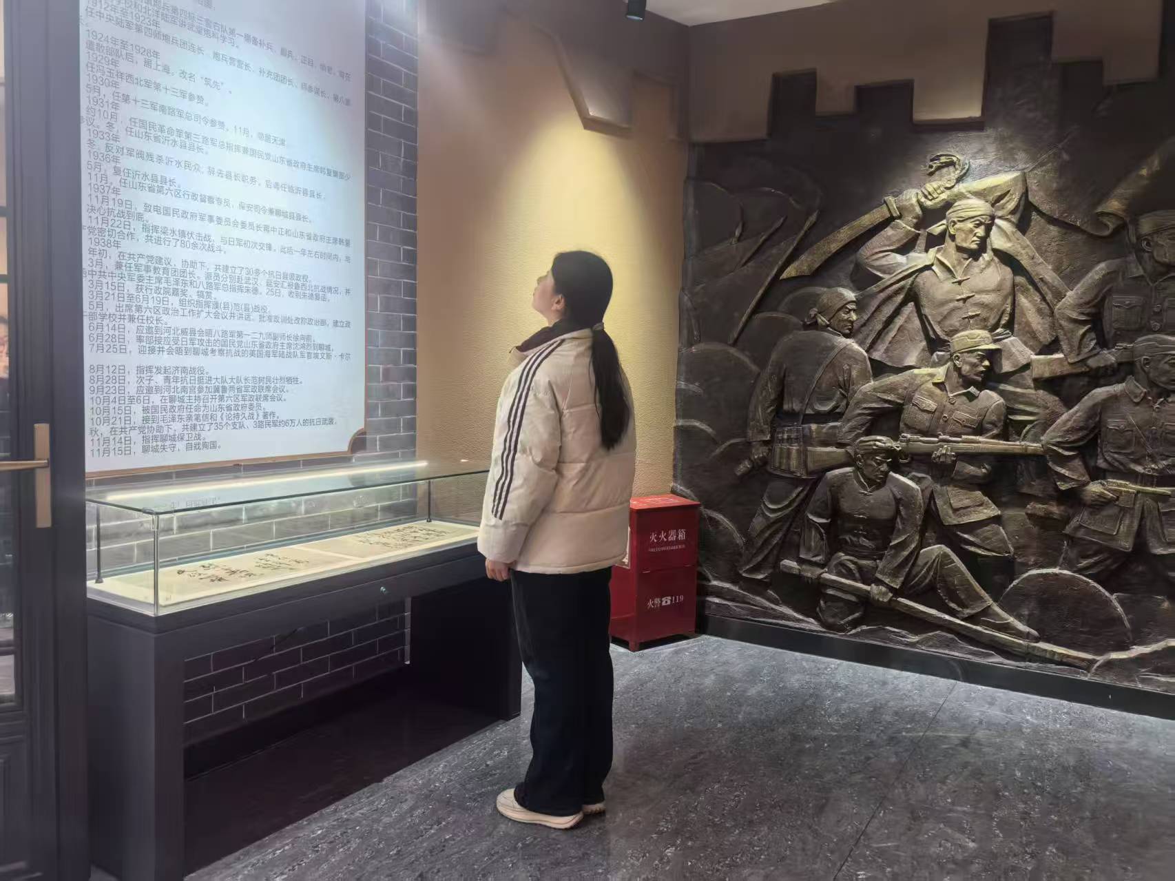 活动开始,同学们步入馆内,一块“民族英雄范筑先殉国处”纪念碑矗立在庭内。在讲解员的引导下,同学们仔细聆听着讲解,认真阅读阅览馆内陈列着的历史文物、详实的图文资料,深深地体会着范筑先将军波澜壮阔的一生。很多人都用笔记录着讲解员讲述的内容,希望能更加深刻的记录这一英雄人物。大家纷纷表示,将以范筑先将军为榜样,传承先烈遗志。互动环节,大家踊跃分享自己了解的抗战故事,交流对范筑先精神的理解,同学们纷纷表示,将以范筑先将军为榜样,传承先烈遗志。最后志愿者们将制作的范筑先精神的海报进行分发,让更多人感受到范筑先英勇无畏的精神,要铭记历史,传承精神火种。