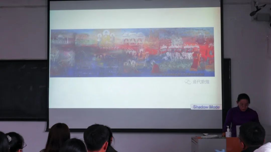 此项目是2019年由中国美术公司主办、中国美术公司岩彩画研究所承办以及河北美术公司东方艺术研究院承办。王洪香老师介绍了项目实施背景及特点。唐代壁画是中国传统绘画的重要组成部分,中国的色彩绘画在这一时期达到了最高水准,是研究古代社会发展、文化交流和绘画艺术的重要历史资料,具有很高的研究价值。
