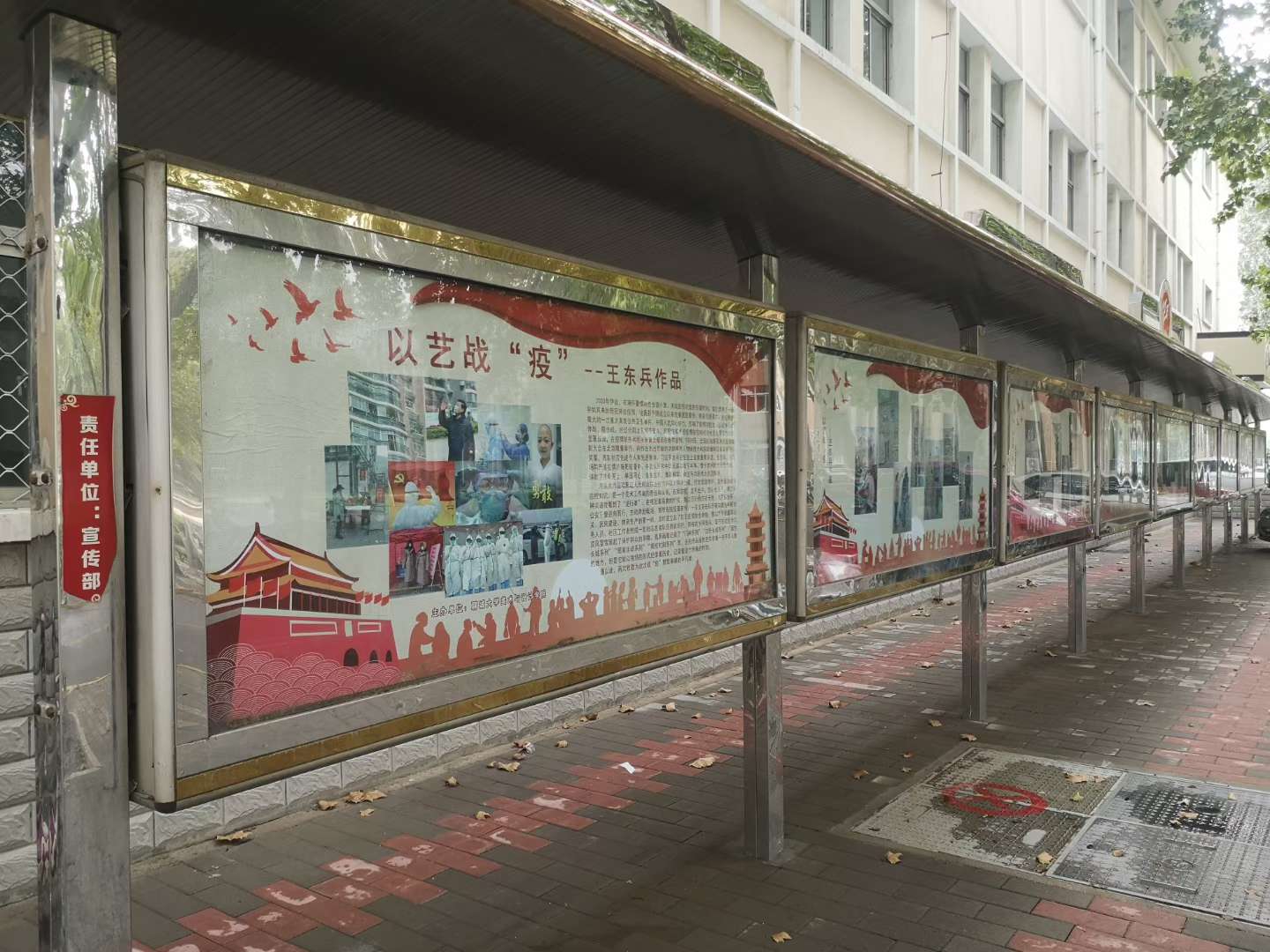 2020年9月15日,由公海gh555000aa线路检测主办的“以艺战‘疫’--王东兵作品展”在公海gh555000aa线路检测西校区(4号教学楼前)宣传栏展出。作品以2020年伊始爆发新冠肺炎疫情后,全国数以万计的白衣天使、人民解放军、公安干警逆向而行,主动奔赴战场,奋战在抗疫最前线;一支支突击队日夜奋战在科研攻关、医院建设、物资生产的第一线,及时建立起了抗击疫情的生命线;以及广大的基层公务人员、社区工作者组成一批批志愿者队伍勇毅前行,穿梭在乡间街头,坚守在社区卡口,顶风冒雪筑起了保护群众的屏障的事迹等为题材,用画笔记录了“门神系列”“白色长城系列”“蓝色长城系列”“居家运动系列”“离校时刻系列”等战“疫”题材作品。