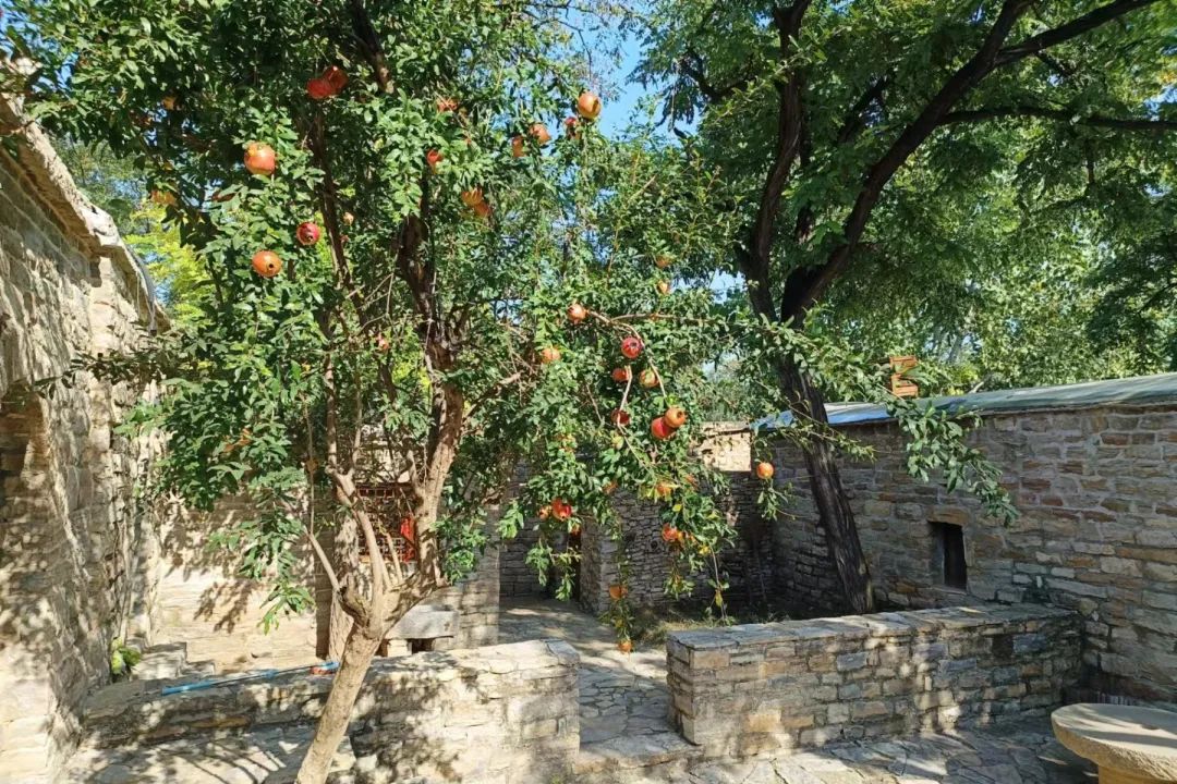 进入五埠村,随处可见的石榴、柿子挂在枝头,郁郁葱葱的植被爬满了远处的山岭,幽静美好的环境让同学们的心灵顿时得到抚慰。