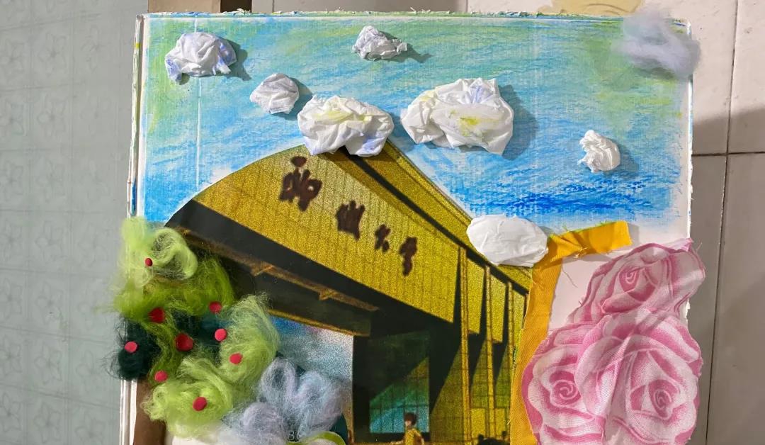 同学们都认真查找校园美景,或是开学拍的照片,或是脑子里的回忆,那些我们曾一起踏过的土地,带给我们无限感动。同学们寻找各种各样好看的布来认真的完成对校园景色的拼贴。同学们的作品想象新颖、真实生动,无不透露着对校园的想念和热爱。