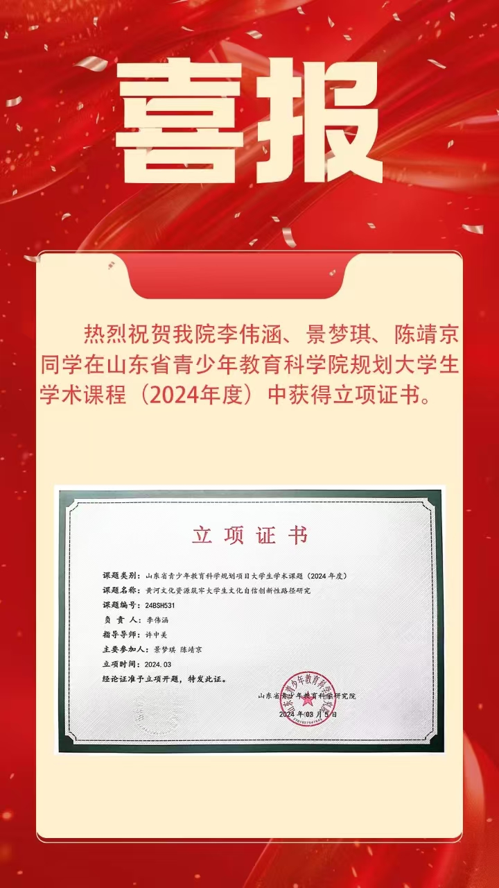 » 喜报|公司学子荣获山东省青少年教育科公司规划老员工学术课程(2024年度)立项证书