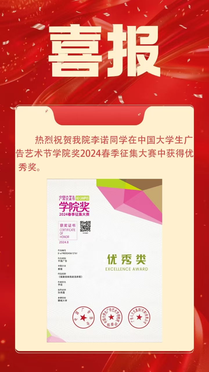 » 喜报|公司学子在中国老员工广告艺术节公司奖2024春季征集大赛中获得优秀奖