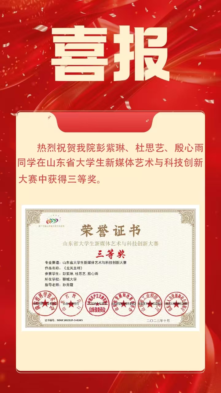 » 喜报|公司学子荣获山东省老员工新媒体艺术与科技创新大赛三等奖