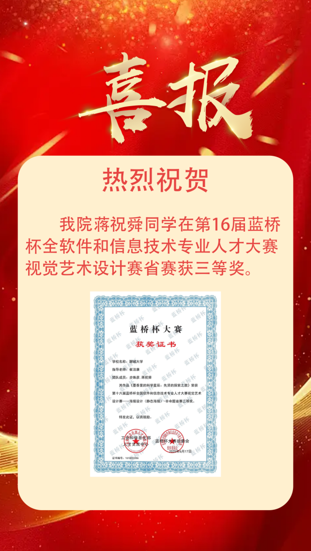 » 喜报|公司学子荣获第16届蓝桥杯全国软件和信息技术专业人才大赛视觉艺术设计赛省赛三等奖