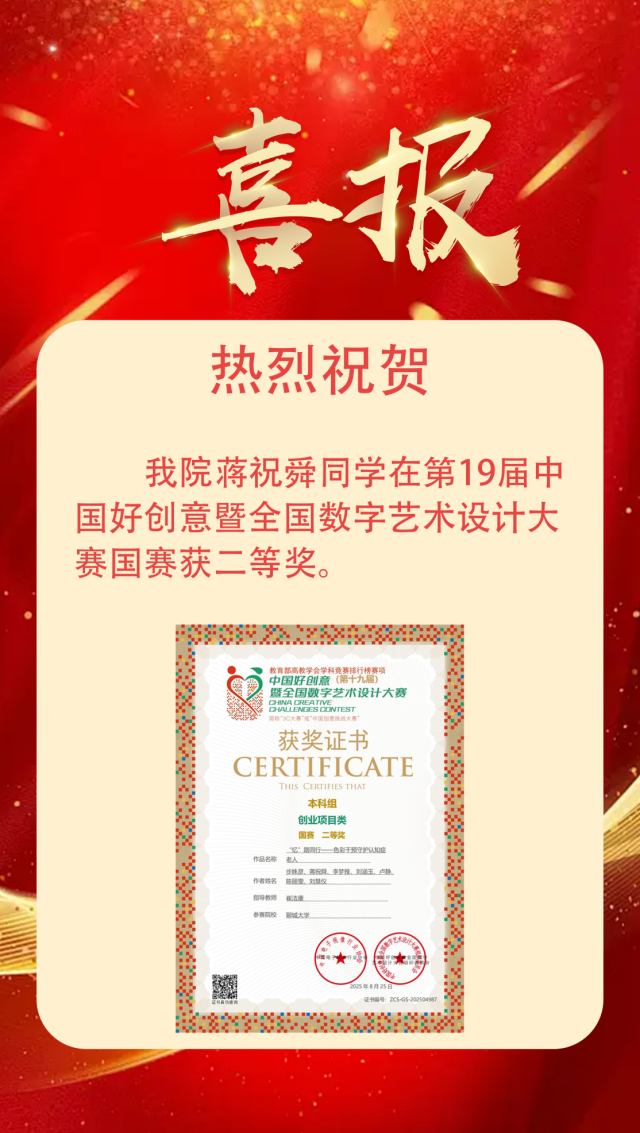 » 喜报|恭喜公司学子荣获第19届中国好创意暨全国数字艺术设计大赛国赛二等奖