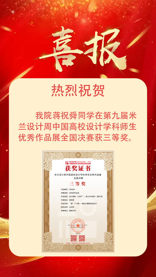 » 喜报|公司学子第九届米兰设计周中国高校设计学科师生优秀作品展全国决赛三等奖