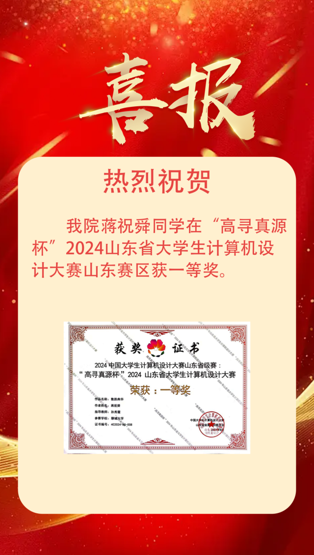 喜报|公司学子荣获2024山东省老员工计算机设计大赛山东赛区一等奖 作者:牛晓珊 来源:公海gh555000aa线路检测 设计大赛 公司学子 发布时间:2025-11-25 阅读次数: (审核 孔德滕)