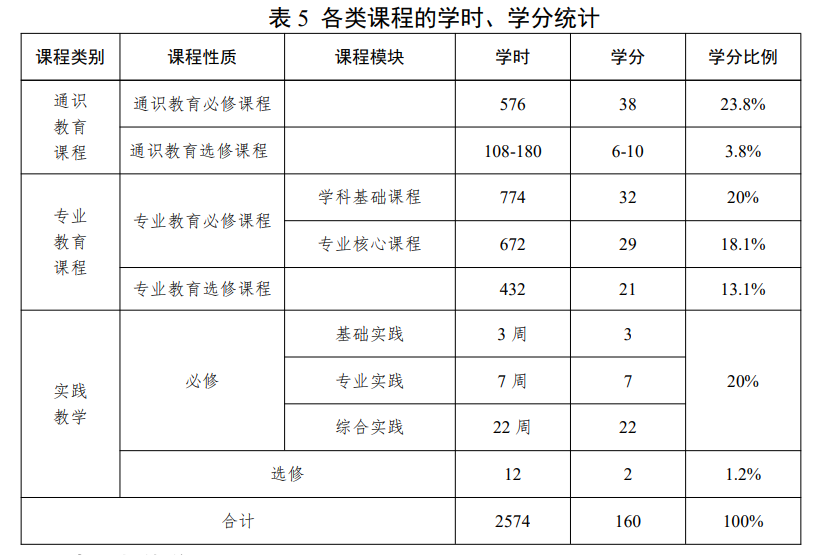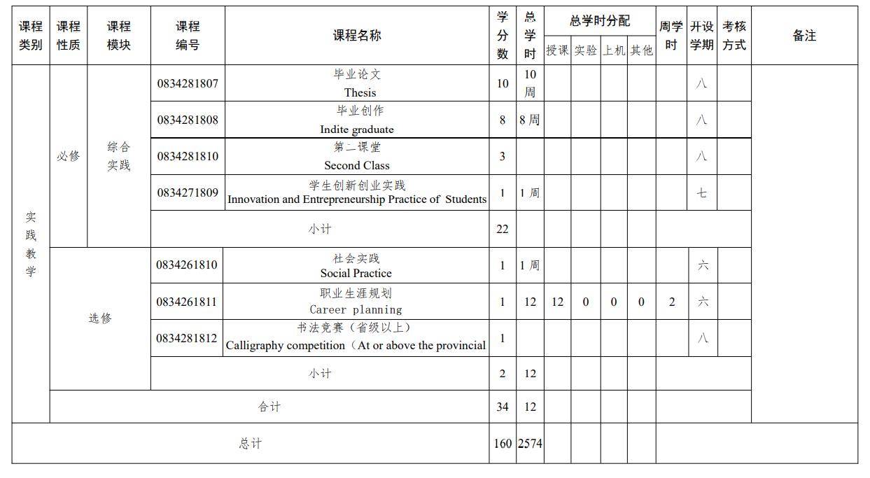 5. 实践教学为本专业本科生必修课程,需修满实践教学必修内容 32 学分。其中实践教学选修内 容 3 学分,实践教学总计 35 学分即可。