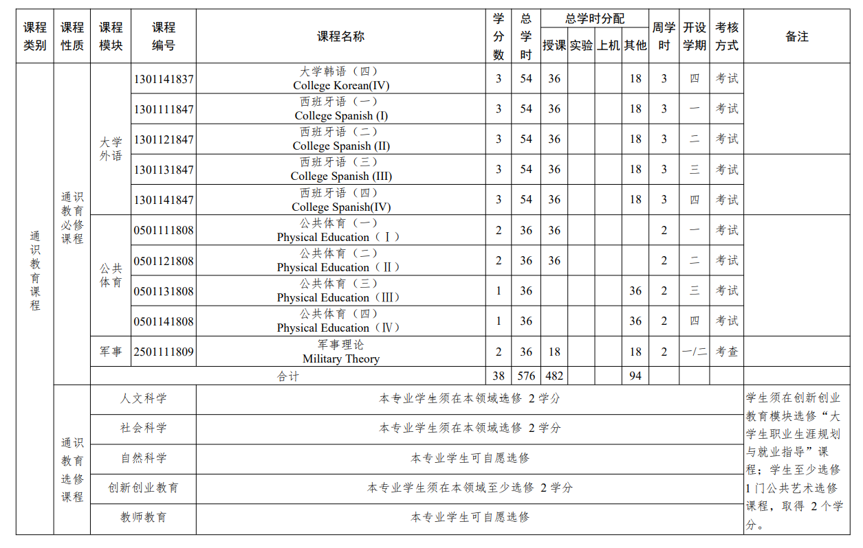 1.本专业本科生必须修满通识教育课程中的必修课程 38 学分和选修课程 6 学分,总计 44 学分。