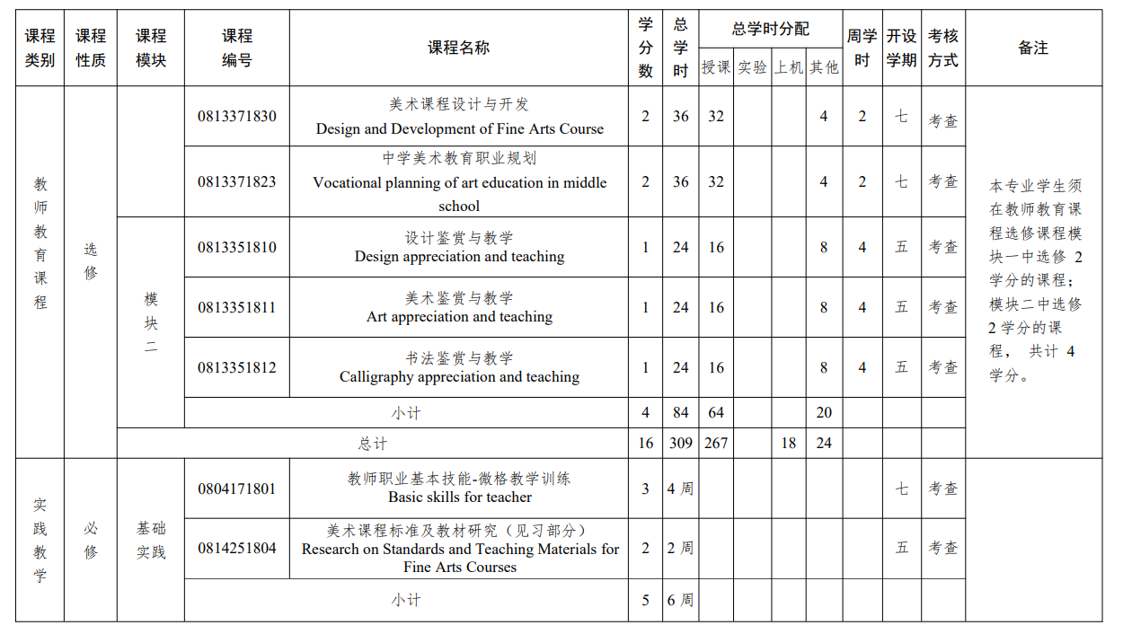 4.本专业本科生必须修满教师教育课程中的必修课程 12 学分和选修课程 4 学分。