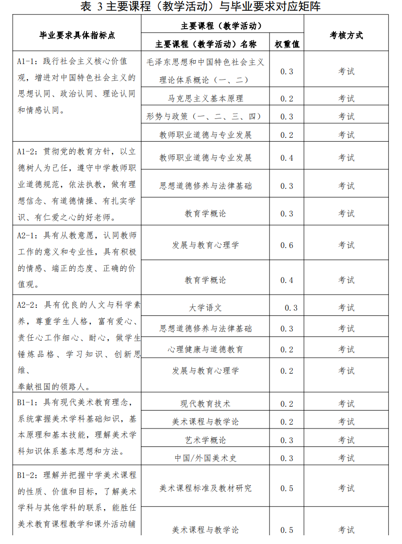 目标 1:具备良好的师德素养和教育情怀。具有坚定的教师职业信念,高尚的教师职 业道德,热爱美术教师事业,为人师表,践行社会主义核心价值观。