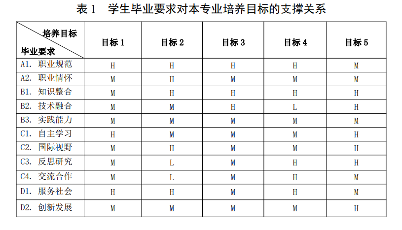 六、主要课程(教学活动)与毕业要求对应矩阵(见表 3)