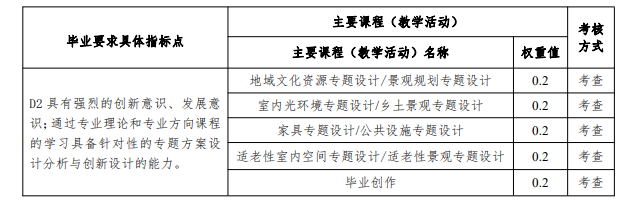 目标 5:具备专业发展意识和持续发展能力。能够对专业发展中的新知识、新思想进行科学合 理的归纳与整理,并将先进的设计理念有效地运用到专业实践之中。能够综合运用多种方法与手段,分析解决各种空间环境设计问题,并以终身学习的态度去适应社会与职业的可持续发展。