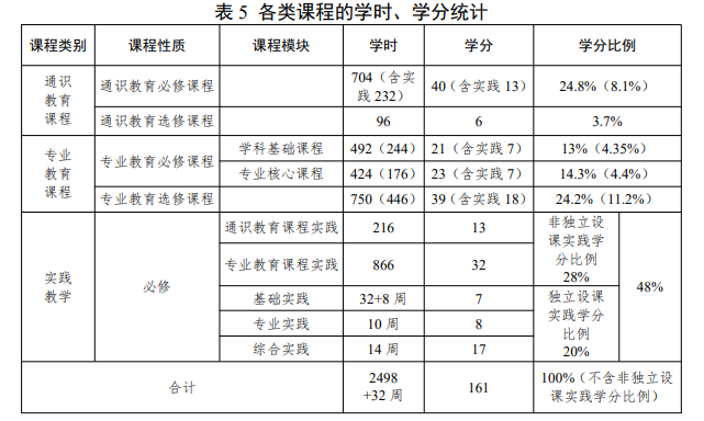 4.本专业本科生在实践教学中必须修满 32 学分。