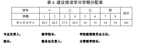 5.表 6 为本专业本科生建议修读学分学期分配表。