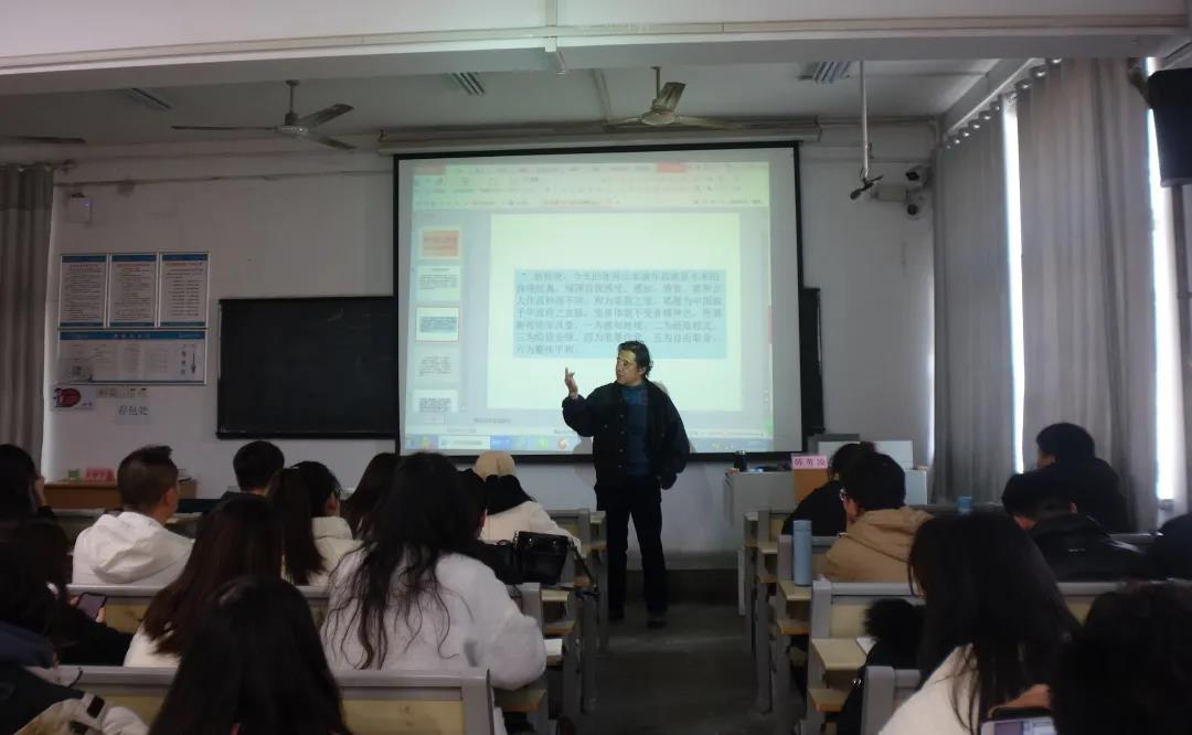 讲座伊始,韩英凌老师与同学们进行交流讨论。首先,对中国画的元素——诗书画印的含义进行讲解;其次,简要概括欣赏中国画的基本标准,并将其总结为“似与不似、以形写神、形神兼备”。