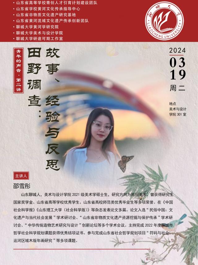 3月19日,2021级研究生邵雪彤为2022级部分本科生作题为《田野调查:故事、经验与反思》的学术分享。