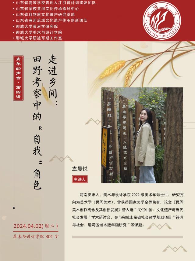 4月2日,2022级研究生袁晨悦为2022级部分本科生作题为《走进乡间:田野考察中的“自我”角色》的学术分享。