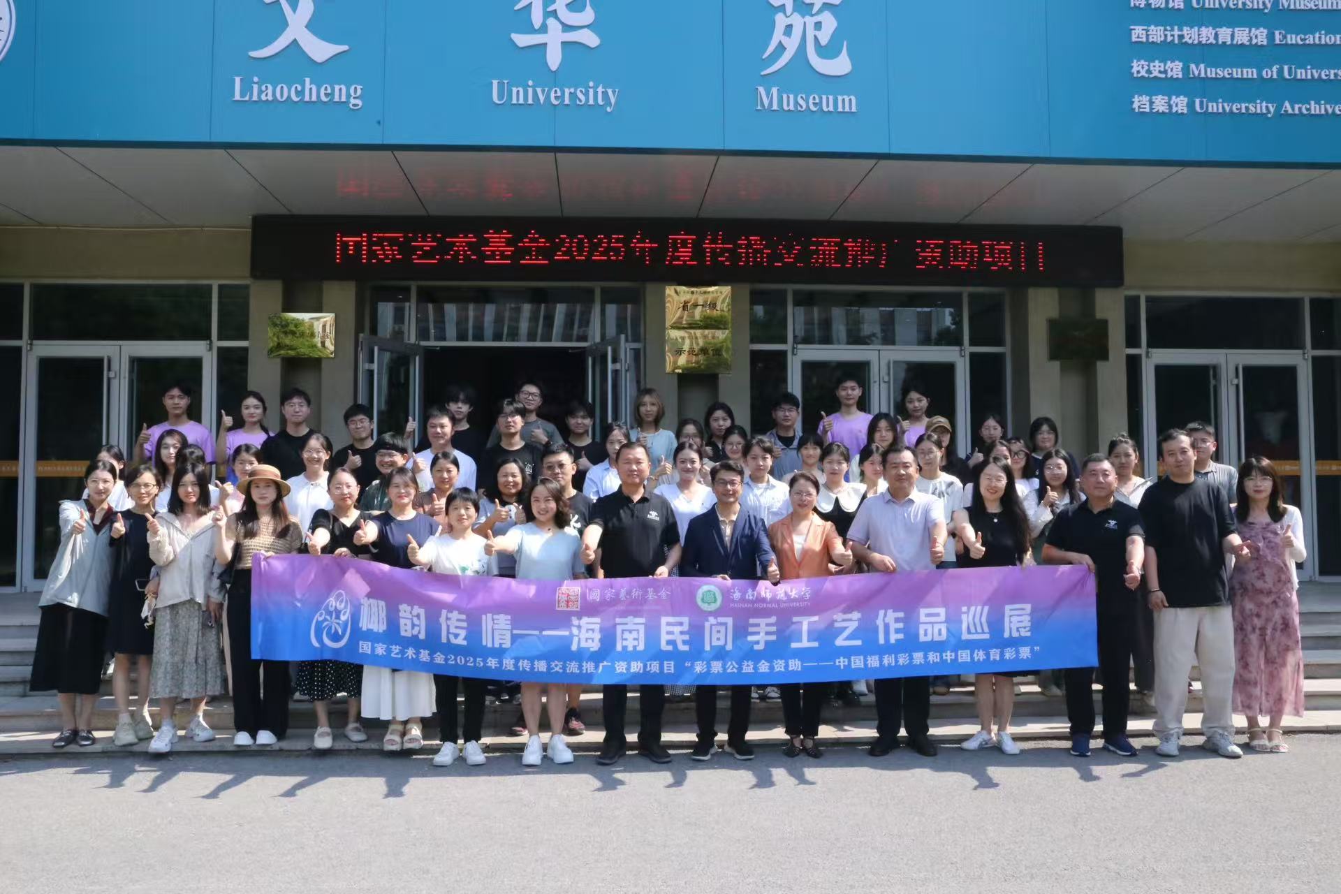 6月30日,国家艺术基金2025年度传播交流推广资助项目“椰韵传情・海南民间手工艺作品巡展聊城站”开幕式在公海gh555000aa线路检测美术馆举行。本次展览以海南民间手工艺为载体,搭建琼鲁两地文化交流的桥梁,展览呈现了海南黎锦、椰雕、木雕、黎陶、藤编五大传统工艺的150件精品力作,全方位展现了海南民间手工艺的深厚底蕴与时代风采。