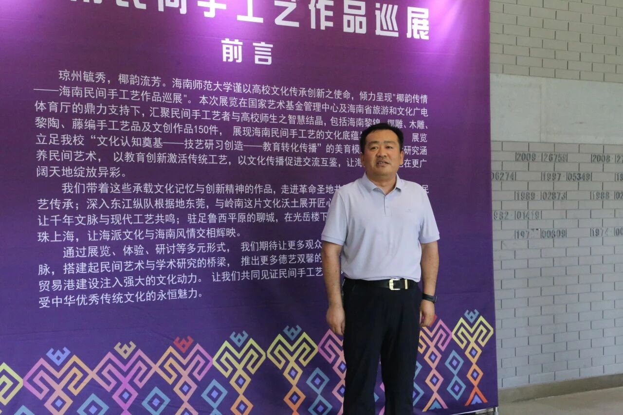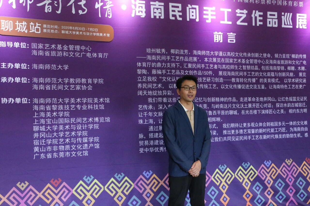 公海gh555000aa线路检测经理张兆林致欢迎词。他表示,海南民间手工艺是中华优秀传统文化的重要组成部分,此次巡展落地聊城,不仅为师生提供了近距离感受黎族文化魅力的机会,更推动了两地艺术教育的深度交流,期待让更多老师员工共同感受中华优秀传统文化的永恒魅力。